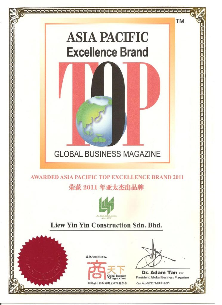 Under his leadership in Liew Yin Yin Construction Sdn. Bhd. and Liew Yin Yin Land Sdn. Bhd., the companies have since been transformed into a diversified group of companies that involves in property development, property management, building and civil works construction.