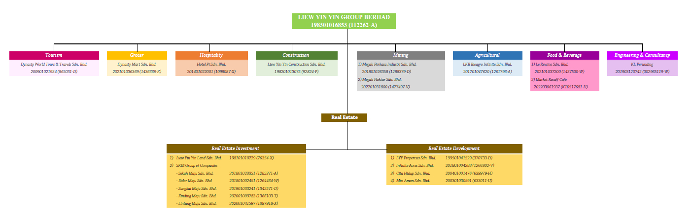 Liew Yin Yin Group Berhad has been established for half a Century, being one of the most well-known and reputable development firms in the industry. LYY grows into a multi-million project development firm and diversify its services beyond Property Development which includes Property Management, Property Construction, Tourism, Media, Hospitality, Agricultural, Mining and Food & Beverage within decades.