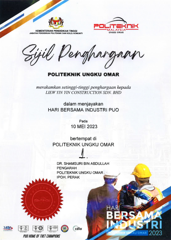Y.Bhg. Dato’ Liew Yin Yin completed his secondary education in the year 1968. He then joined a construction firm in Taiping, Perak as a site supervisor.